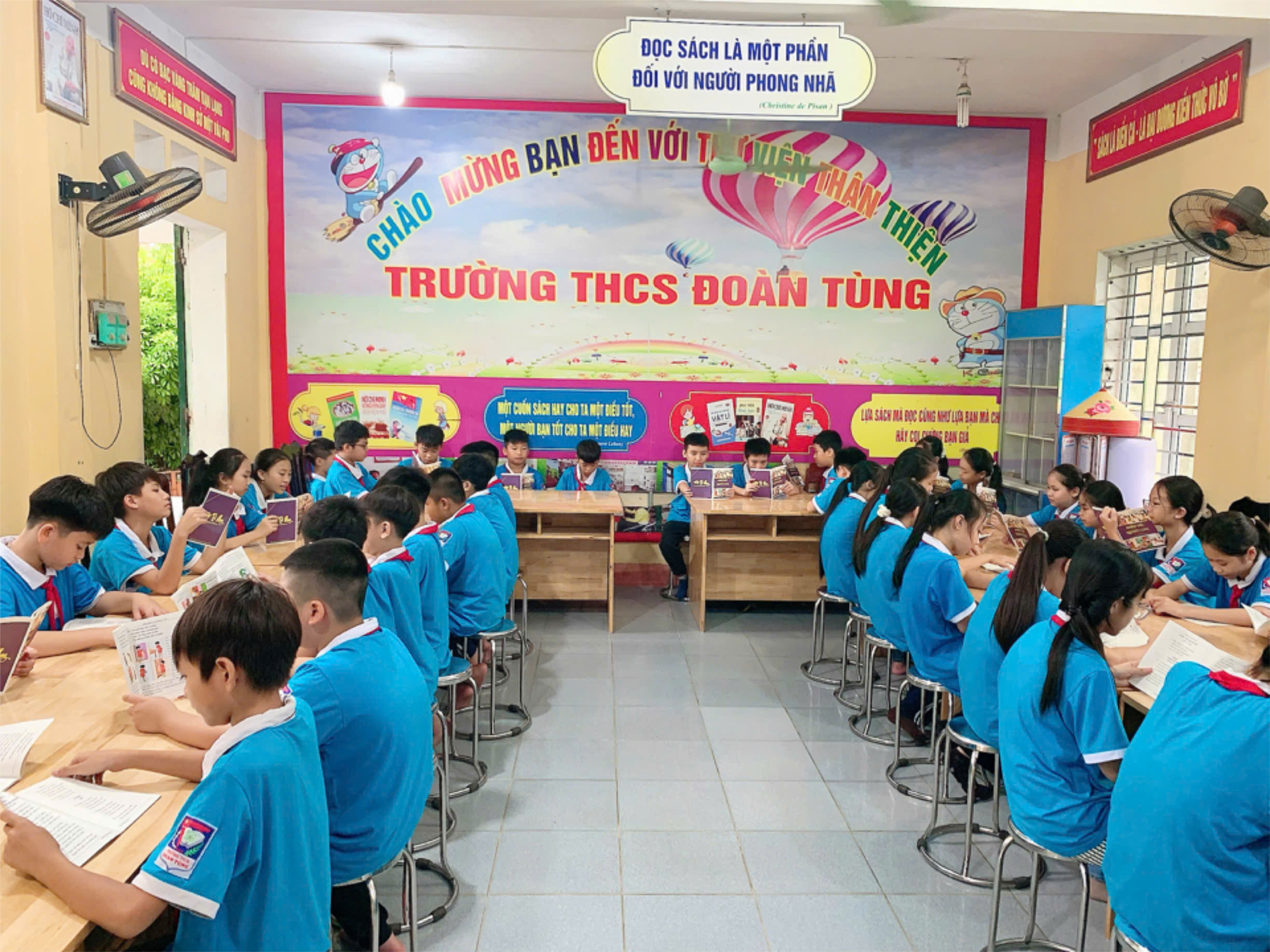 Trong tiết đọc, cô giáo phụ trách thư viện đã cho cả lớp cùng nhau thảo luận về những việc làm thể hiện lòng yêu thương trong trường, lớp và trong đời sống hằng ngày. Nhiều bạn đã kể về việc giúp đỡ bạn bè, nhường nhịn em nhỏ hay chia sẻ với người gặp khó khăn, lòng biết ơn, kính trọng với thầy cô, gia đình và xã hội. Không khí tiết học thật ấm áp, ai cũng cảm thấy như lòng mình được lan tỏa thêm sự yêu thương và nhân ái.