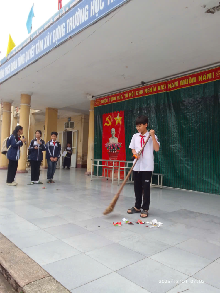 Hoạt động sinh hoạt dưới cờ bắt đầu với nghi thức chào cờ trang nghiêm, sơ kết thi đua tuần và phổ biến nhiệm vụ tuần mới. Tiếp đó, hai em học sinh lớp 6B dẫn chương trình, nêu bật mục đích và ý nghĩa của lễ phát động phong trào "Gọn nhà, đẹp trường". Các em học sinh được xem tiểu phẩm có liên quan đến chủ đề do tập thể chi đội 6B thể hiện.