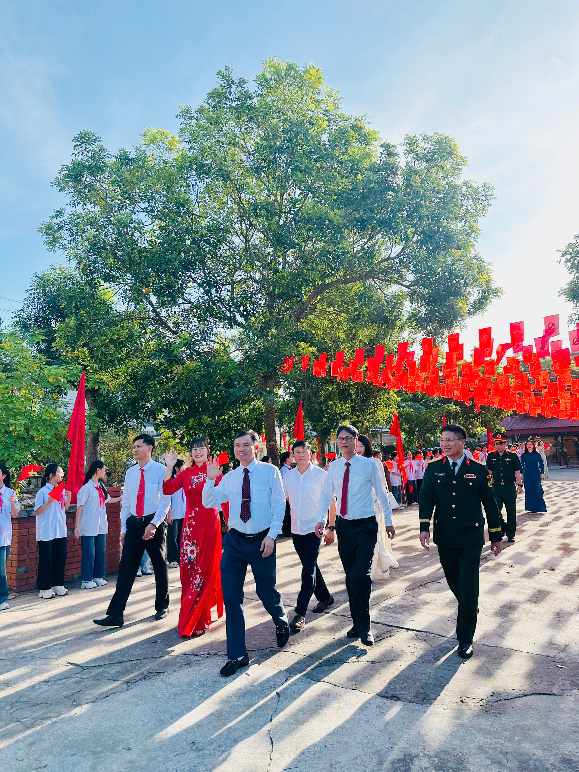Thay mặt tập thể cán bộ, giáo viên và học sinh, xin bày tỏ lòng biết ơn chân thành và sâu sắc tới các đồng chí lãnh đạo, các vị đại biểu đã dành thời gian quý báu đến dự lễ khai giảng năm học 2025-2026