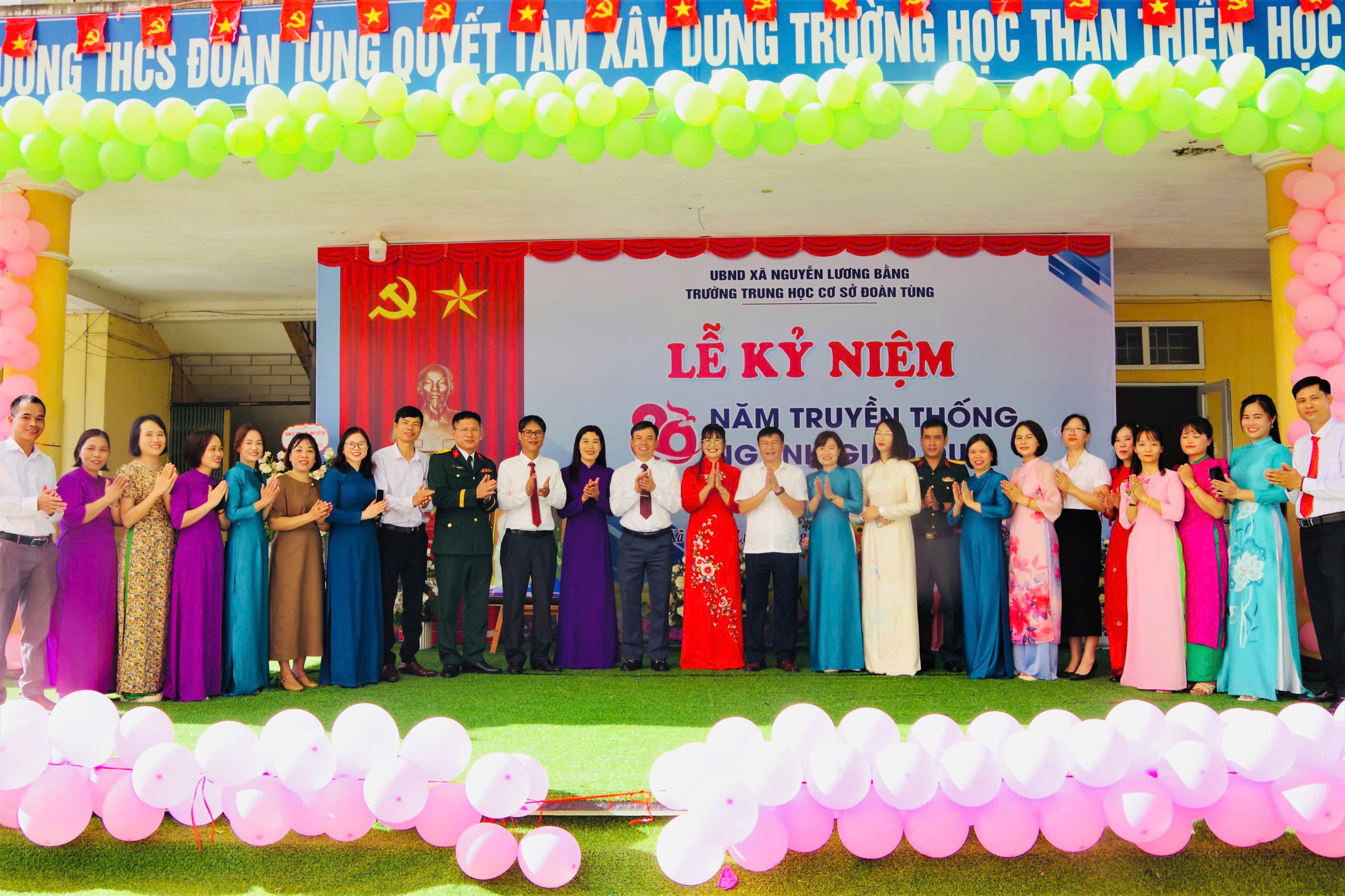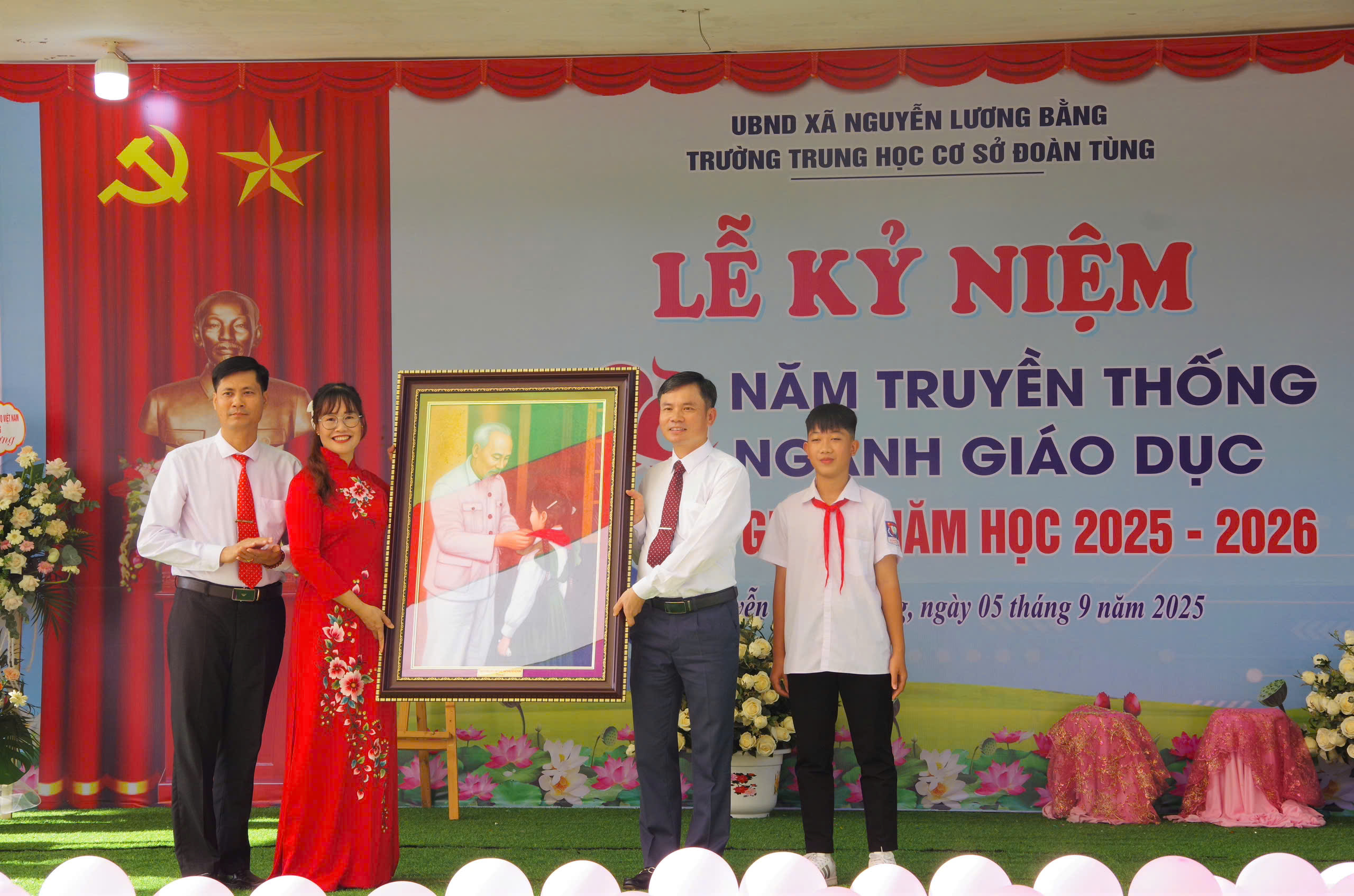 Trong không khí hân hoan của ngày khai giảng năm học mới và đặc biệt ý nghĩa hơn khi toàn ngành giáo dục đang long trọng kỷ niệm 80 năm thành lập Bộ Giáo dục và Đào tạo, tập thể cán bộ, giáo viên và học sinh nhà trường vô cùng vinh dự khi được đón tiếp sự hiện diện của các đồng chí lãnh đạo thành phố Hải Phòng và đại biểu xã Nguyễn Lương Bằng.